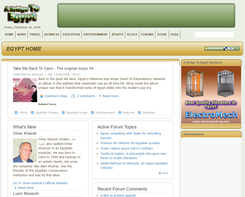 A Bridge To Egypt 2.0 is live and active covering its main mission; bringing useful information about Egypt to those seeking it
